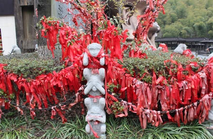 ?????? 在老壽星身旁的這些石雕猴子,每三只猴子疊羅漢而形成燈座。一猴掩耳,一猴蒙眼,一猴捂嘴。寓意“不聽、不看、不說”,表現(xiàn)佛教超然處世思想境界,人生長樂不過如此。