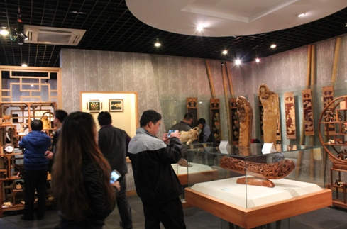 ??????? 跟隨著導(dǎo)游帶領(lǐng),【中國竹雕刻精品藝術(shù)館】便浮現(xiàn)在眼前、館內(nèi)珍藏了許多技藝精湛的竹雕刻藝術(shù)品。該館占地面積約3000平方米,共分為兩個(gè)展館——A館和B館,A館主要展示了竹子的發(fā)展進(jìn)程、中國竹刻雕藝術(shù)品及各類竹根雕、竹編手工藝等,B館為售賣區(qū),為我們提供了各類竹根雕工藝品、竹纖維制品和竹炭等,充分顯示了中國源遠(yuǎn)流長的竹文化精髓。