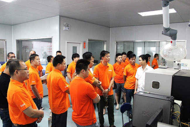 研發(fā)中心主任韋起桂帶領(lǐng)大家參觀了司能的中心實(shí)驗(yàn)室。該中心目前是廣西壯族自治區(qū)內(nèi)技術(shù)水平最高、分析手段最齊全的潤(rùn)滑油分析評(píng)定中心。韋主任針對(duì)生產(chǎn)自動(dòng)化,基礎(chǔ)油采購(gòu)渠道,先進(jìn)的技術(shù)檢驗(yàn)研發(fā)設(shè)備等話題與現(xiàn)場(chǎng)來(lái)賓們進(jìn)行了交流與探討,使之更加拉近與經(jīng)銷商、終端客戶的距離。