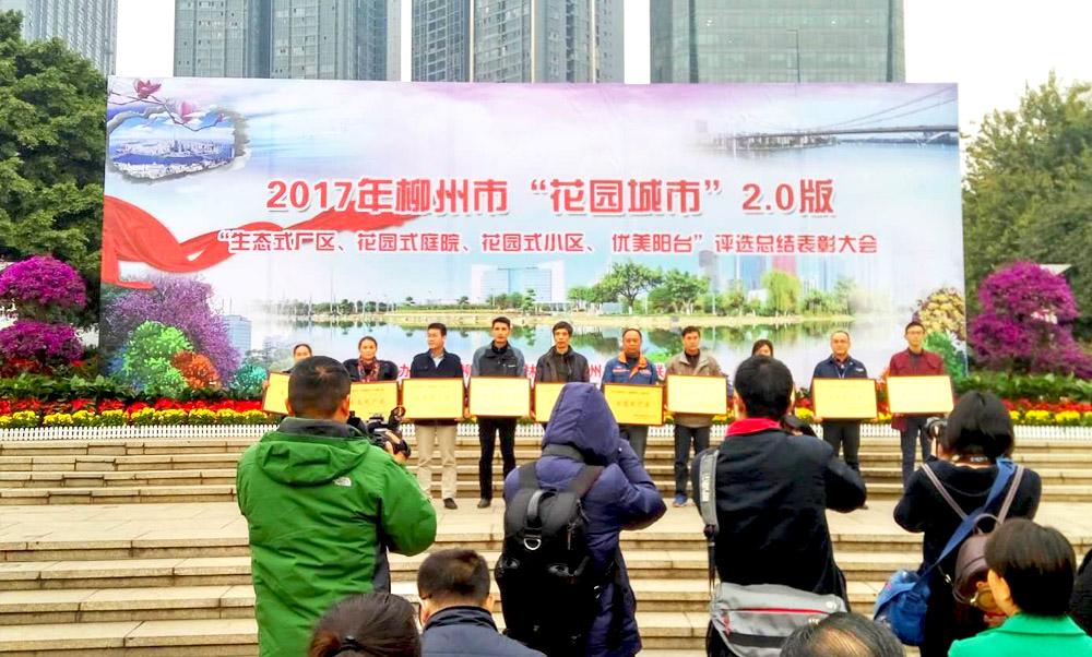 2017年12月27日,司能石油化工有限公司(以下簡(jiǎn)稱“司能石化”),經(jīng)柳州市陽(yáng)和規(guī)劃建設(shè)環(huán)保局、園林局等外部上級(jí)環(huán)保部門(mén),以在柳州市人民廣場(chǎng)召開(kāi)“2017年柳州市‘花園城市’2.0版——‘生態(tài)式廠區(qū)、花園式小區(qū)、優(yōu)美陽(yáng)臺(tái)’評(píng)選總結(jié)表彰大會(huì)”的方式,不僅授予了我司“生態(tài)式廠區(qū)”榮譽(yù)牌匾,還另外贈(zèng)送了“雙層三角梅、水紅三角梅、紫薇(花瓶式)、綠寶、粉花凌霄、炮仗花、龍吐珠”等價(jià)值約3000多元的名貴盆栽共計(jì)15盆,并對(duì)我司綠化工作人員的辛勤工作予以肯定。