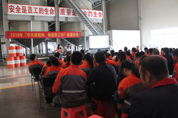 為貫徹落實(shí)習(xí)近平總書記關(guān)于“弘揚(yáng)勞模精神和工匠精神”的重要指示精神,傳播向上向善正能量,公司黨支部于2018年11月30日在調(diào)合車間開展“學(xué)勞模精神,做極致工匠”道德講堂活動(dòng)。