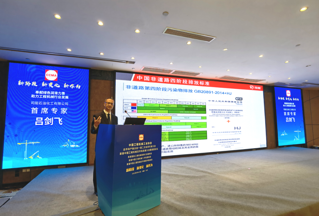 會上,司能首席專家呂劍飛代表公司發(fā)表演講。他表示,隨著中國非道路四階段的實施,對發(fā)動機技術提出了更加嚴苛的要求。由此,發(fā)動機潤滑油產(chǎn)生了需要解決的新問題:更長的換油周期和耐久性要求需要;排放和后處理裝置要求使用低灰分油品;燃油經(jīng)濟性及CO?減排要求需要低粘度油品。針對這些要求,司能已經(jīng)開發(fā)出針對四階段排放的油品,并且和相關OEM在展開合作,以提高燃油經(jīng)濟性為重要考慮因素,為客戶提供更適合四階段排放的油品。呂劍飛提出,互聯(lián)網(wǎng)背景下的后市場開發(fā)應以合作共贏為主旨,加強橫向合作,贏得工業(yè)機械行業(yè)的共同發(fā)展。